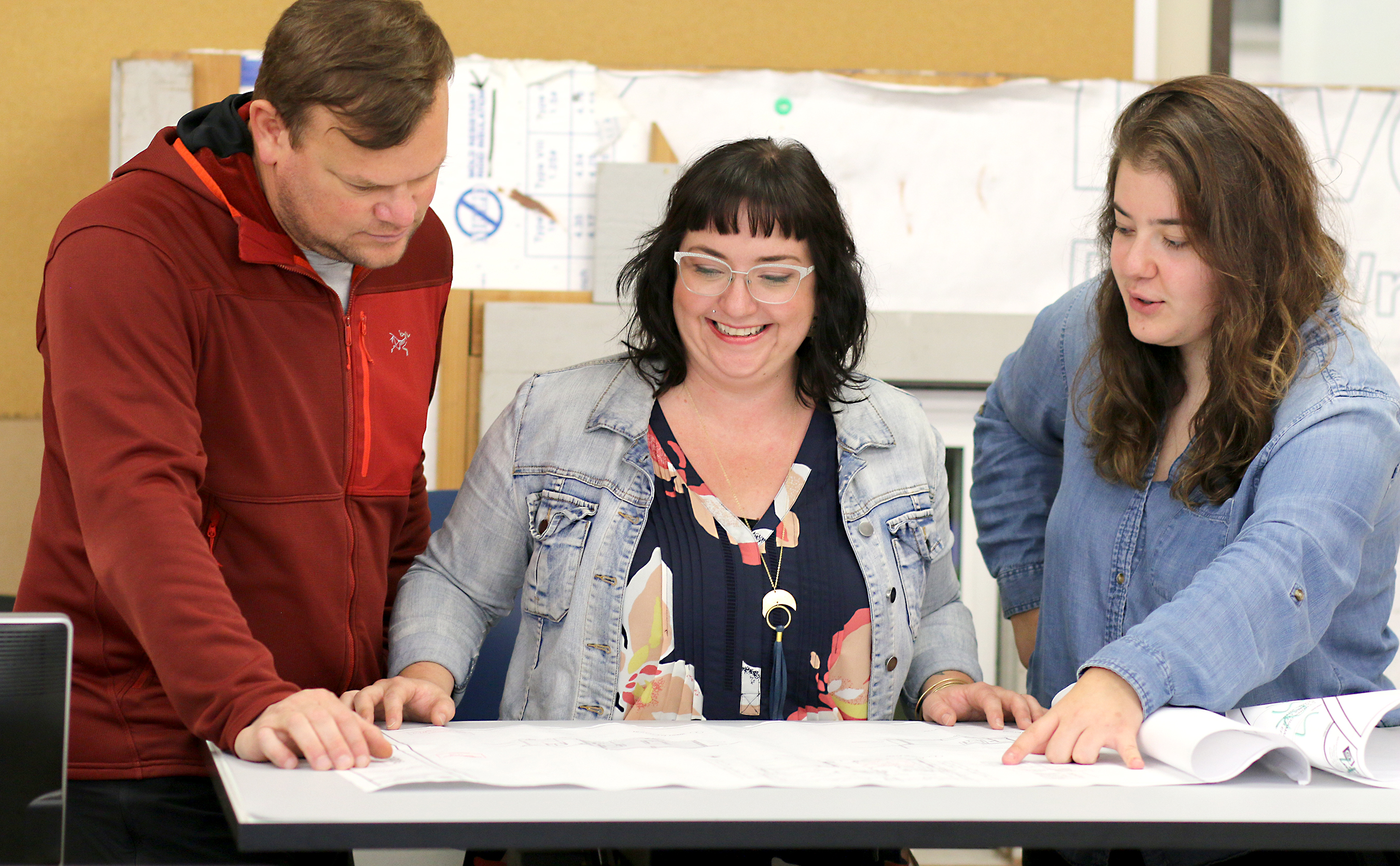 Students check out permit plans in class.