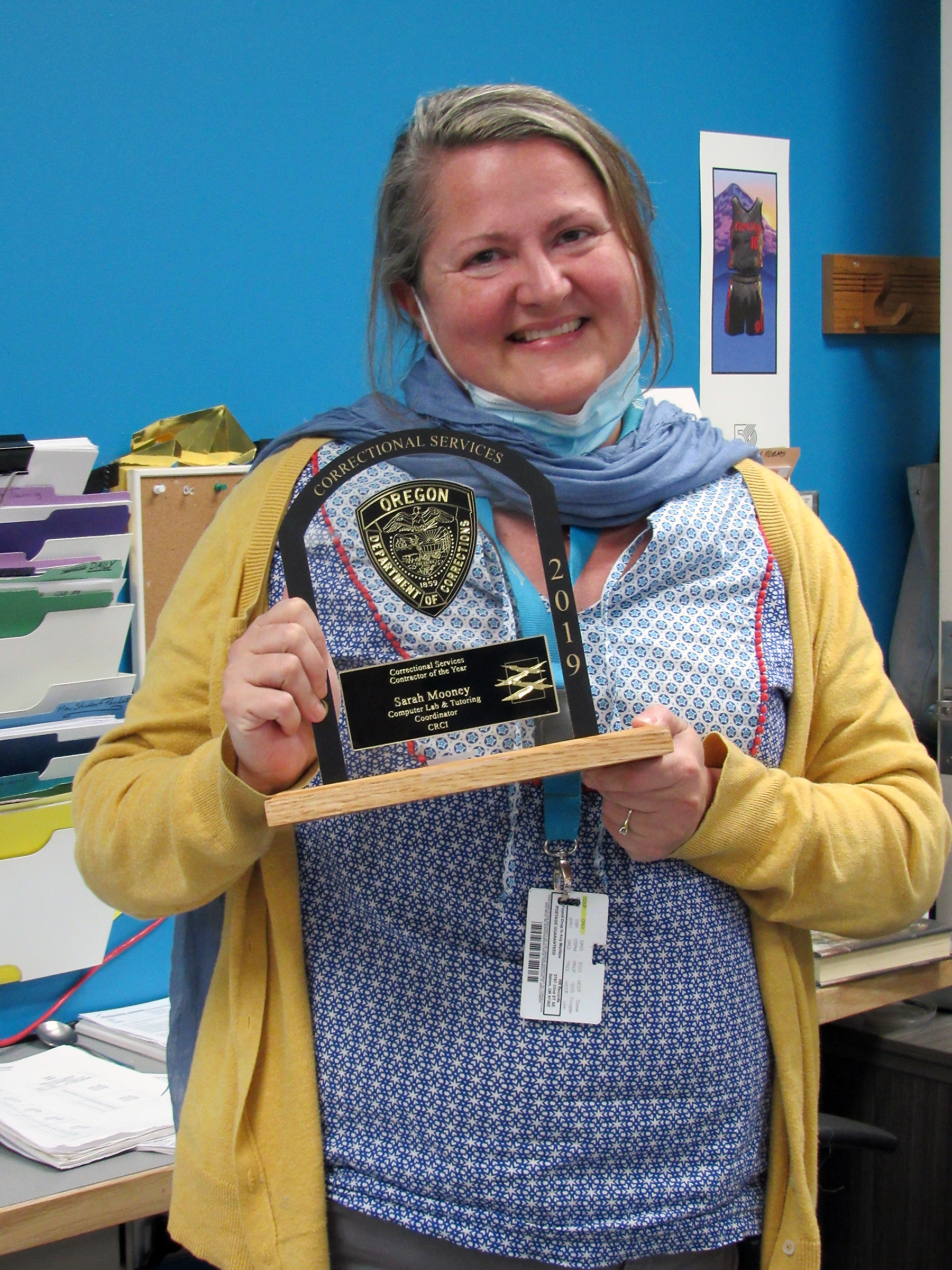 The bad news is that she couldn’t return to her Department of Corrections (DOC) job due to the COVID-19 pandemic. The good news, though, was that she was being honored with the statewide Correctional Services Contractor of the Year Award for 2019. Due to the closure of her offices soon after, Mooney couldn’t be bestowed with the hardware until this past summer.