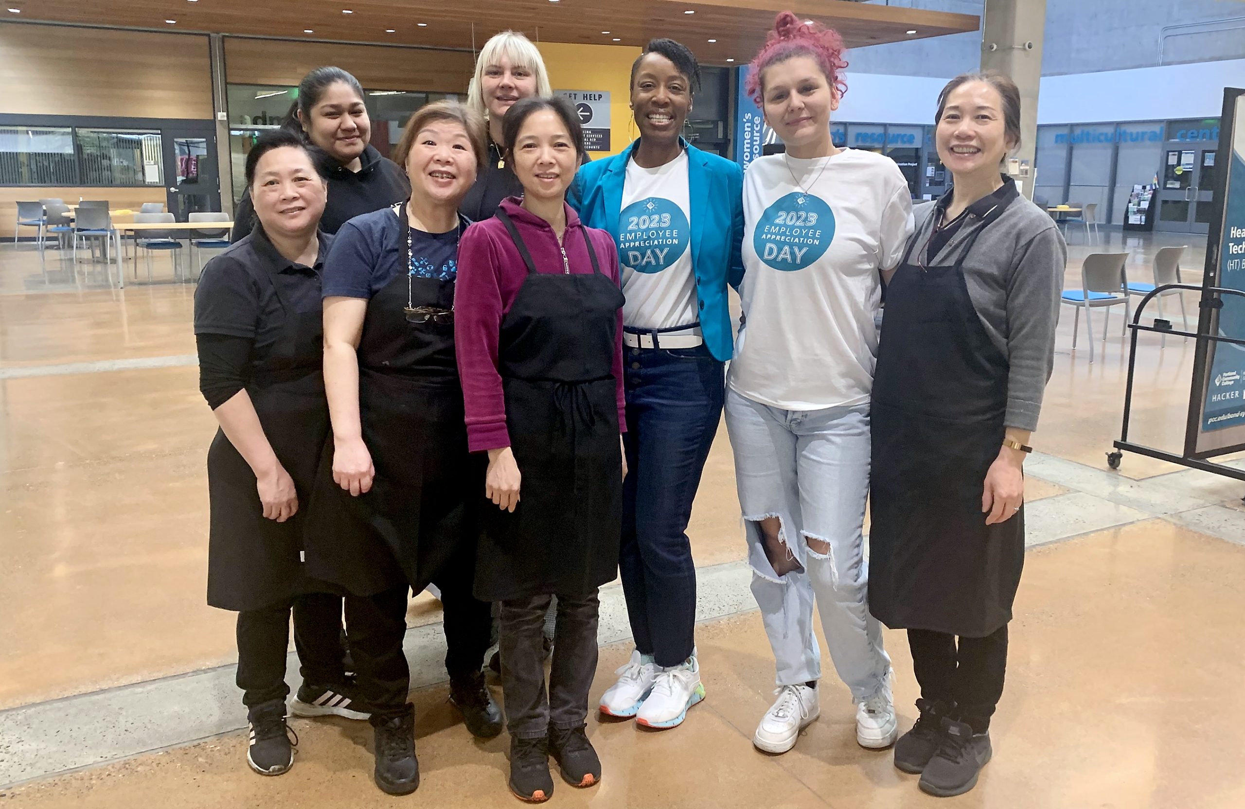 Dr. Bennings honors the college's food services staff as part of Classified Employee Appreciation Week.