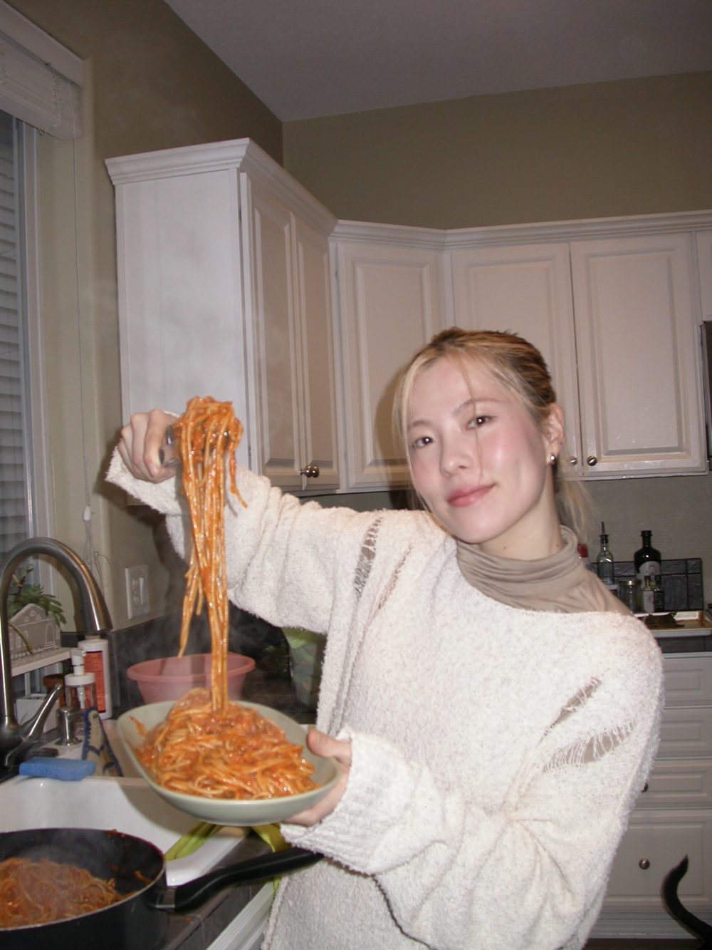 Seunghoi worked in food service while trying to land her first design job and now makes rose pasta with tomato cream and really beautiful bagel sandwiches!