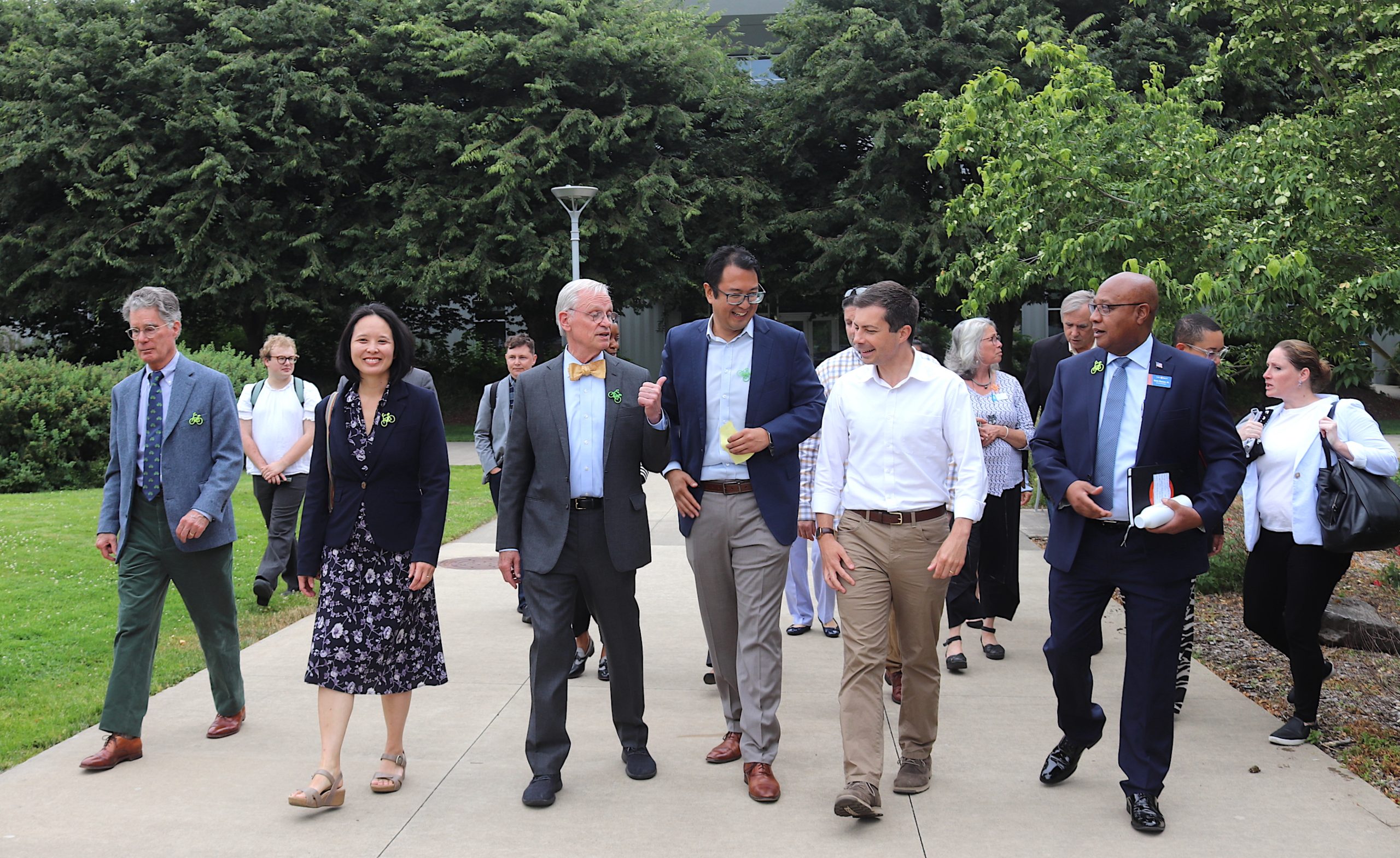 Transportation Secretary Pete Buttigieg tours PCC's Southeast Campus.