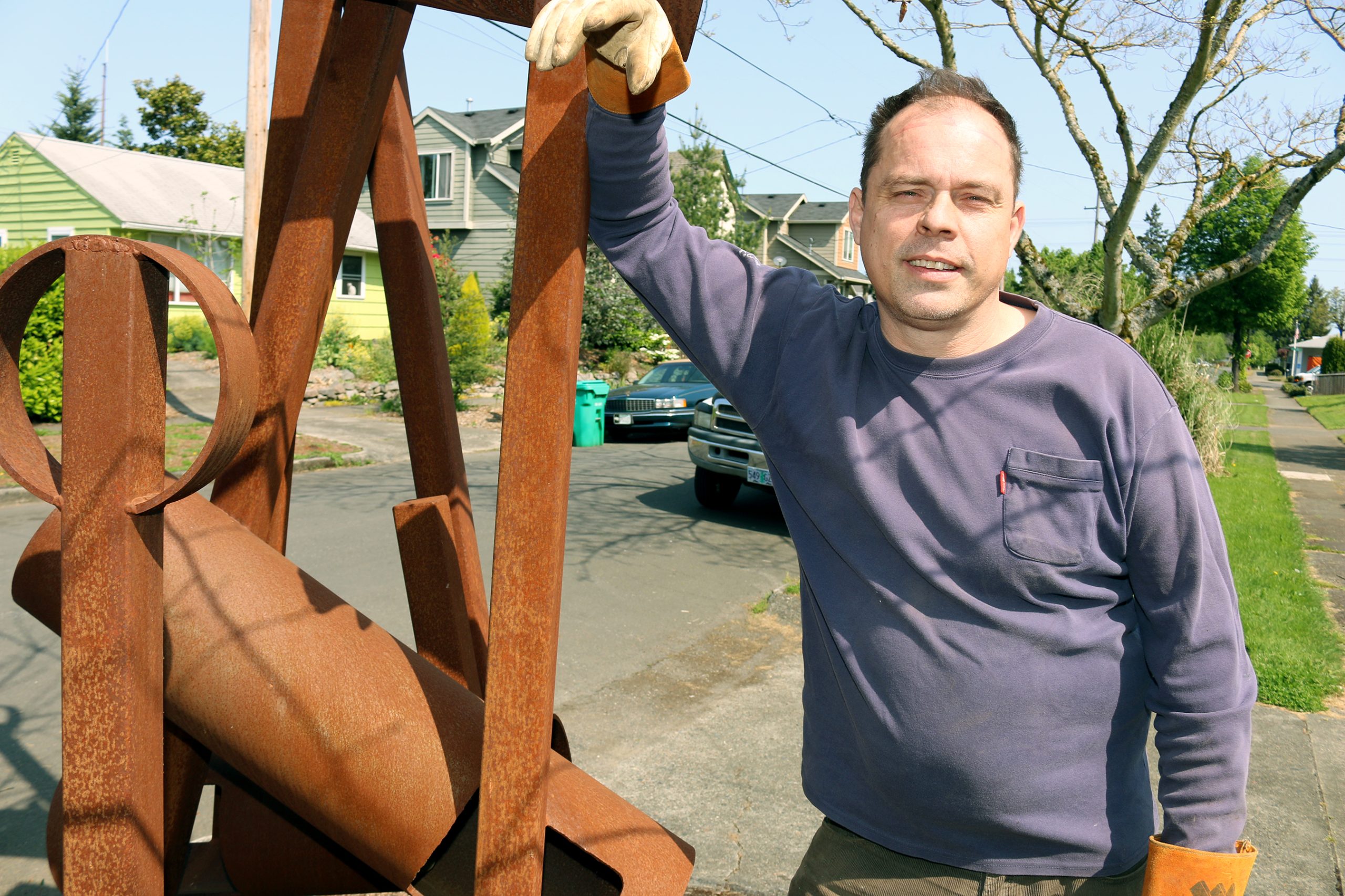 Mylan Rakich relaxes on one of his art installations.