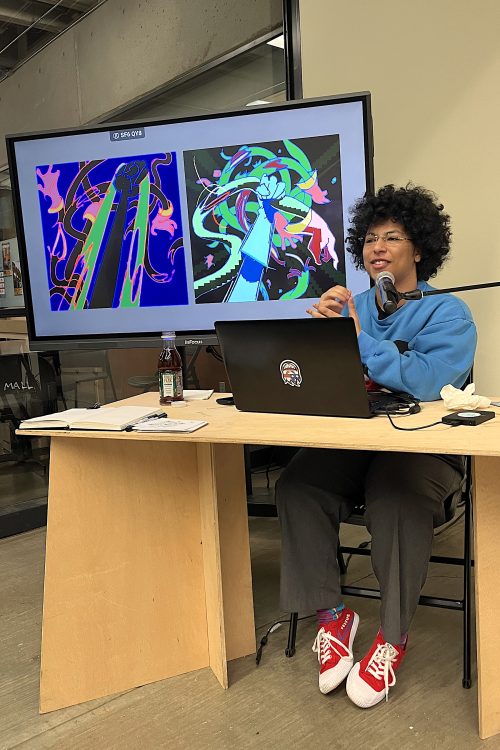 At the North View Gallery Artist’s Talk, Tronci-Bell told the crowd of mostly students that he has learned to manage long-term projects by compartmentalizing tasks to avoid ADHD-like time management struggles.