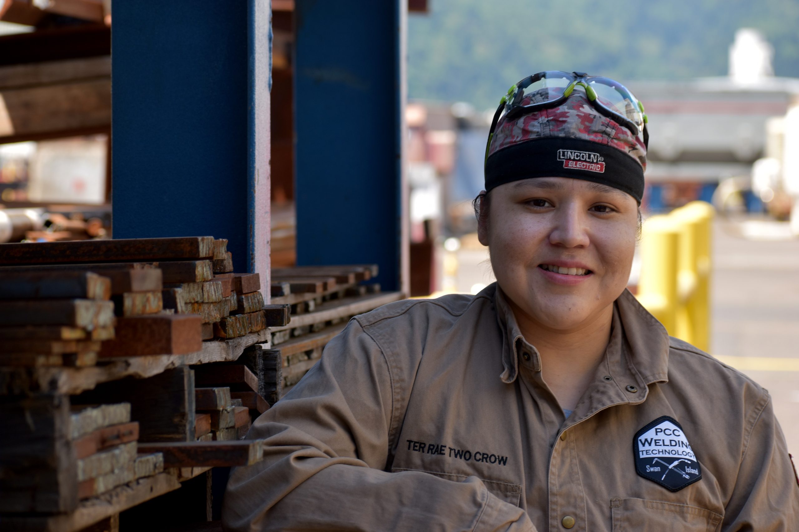 Mis Ter Rae Two Crow at the Swan Island Maritime Welding Center.