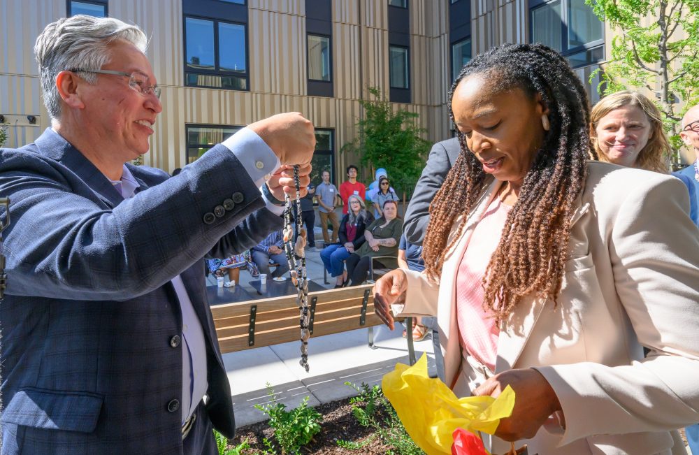 The college, along with Home Forward, the Native American Youth and Family Center (NAYA), Metro and other partners, celebrated the grand opening of the newly named “chaku kumtuks haws” (learning house). The 84-unit affordable housing community in the Cully-Concordia neighborhood is co-located with PCC’s Opportunity Center at 42nd Avenue with on-site early learning provided by NAYA.