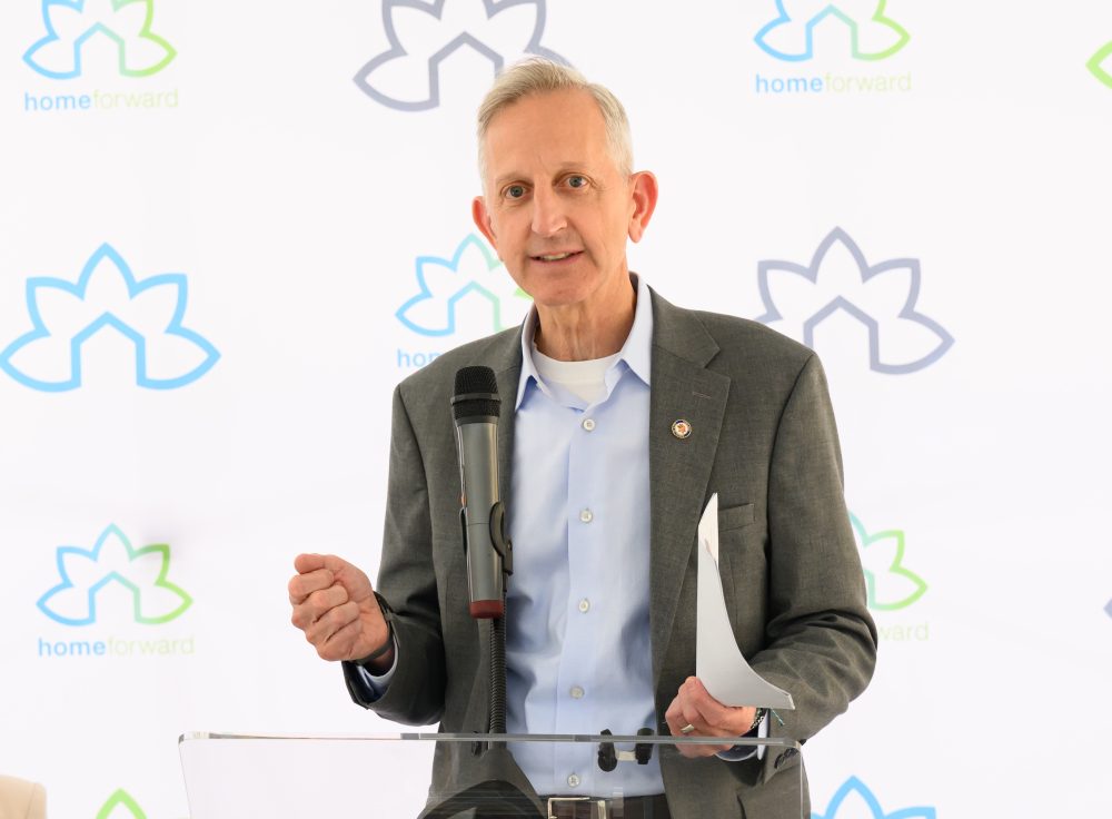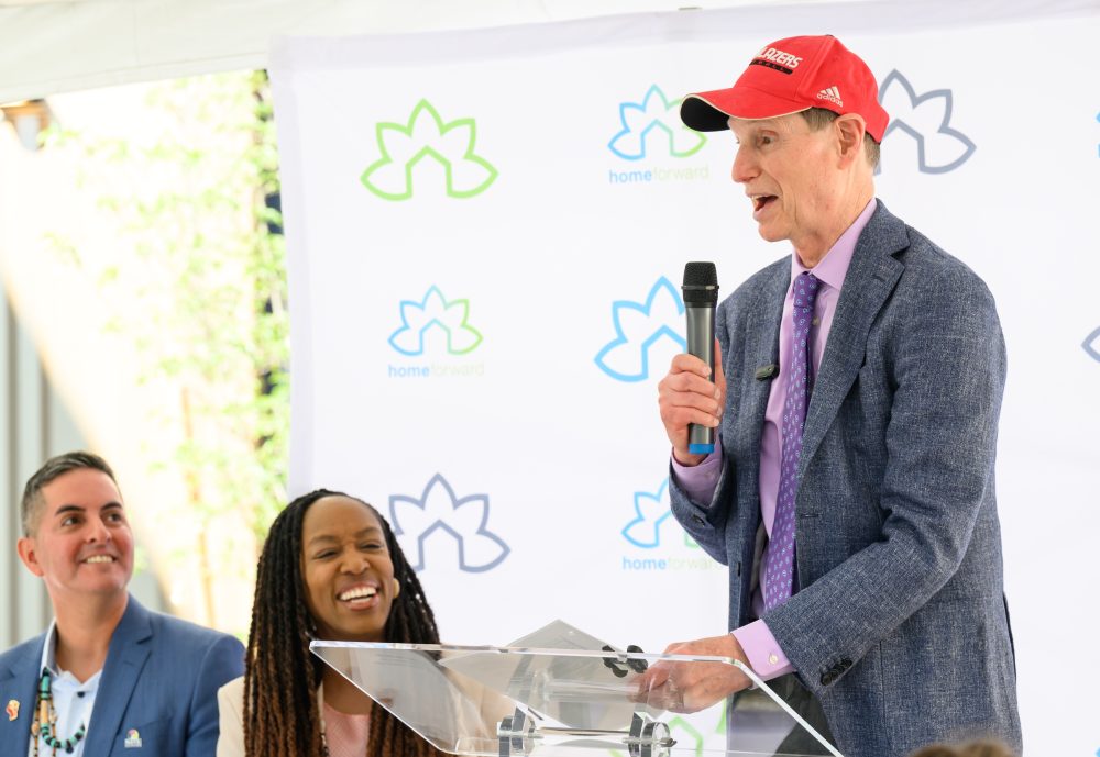 Ivory Matthews, CEO of Home Forward, with Dr. Bennings, Oscar Arana of NAYA and State Rep. Tawna Sanchez.