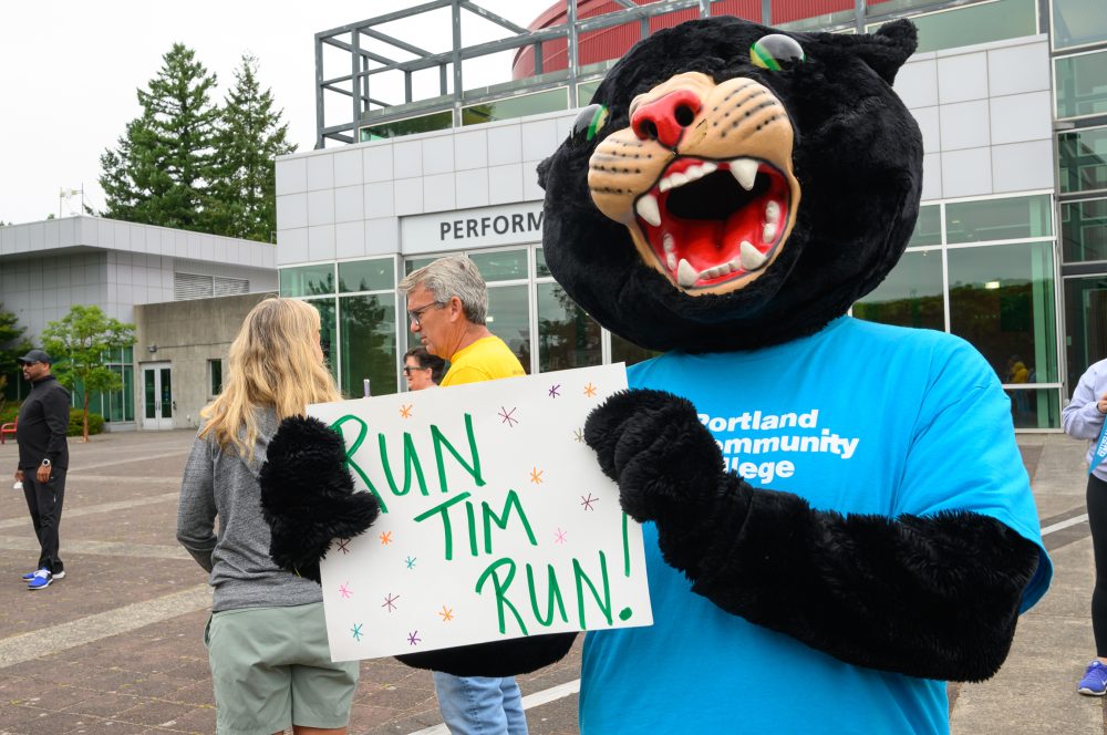 Clackamas Community College President Dr. Tim Cook is on a huge challenge: running more than 1,500 miles to all 17 Oregon community colleges in 50 days. On Saturday, Aug. 2, Cook stopped by Portland Community College’s Sylvania Campus to greet staff and students and continue his journey to other Oregon community colleges. On hand to welcome Cook were State Rep. Rob Nosse and PCC President Dr. Adrien Bennings, who ran with him on his jog out of the campus.