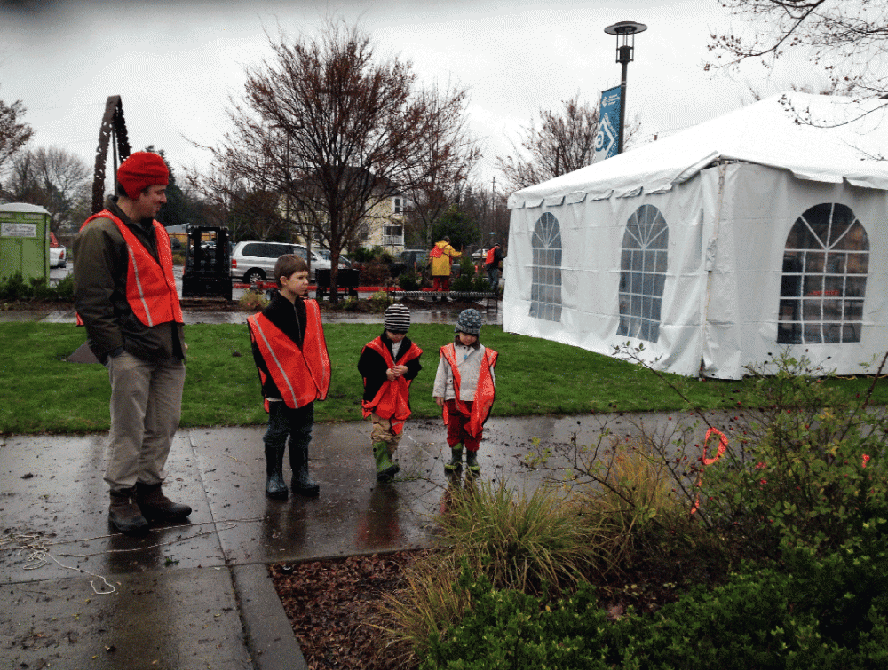 Neighbors assess their plant choices at the Free Plant Day sponsored by Cascade Campus and Hoffman Construction