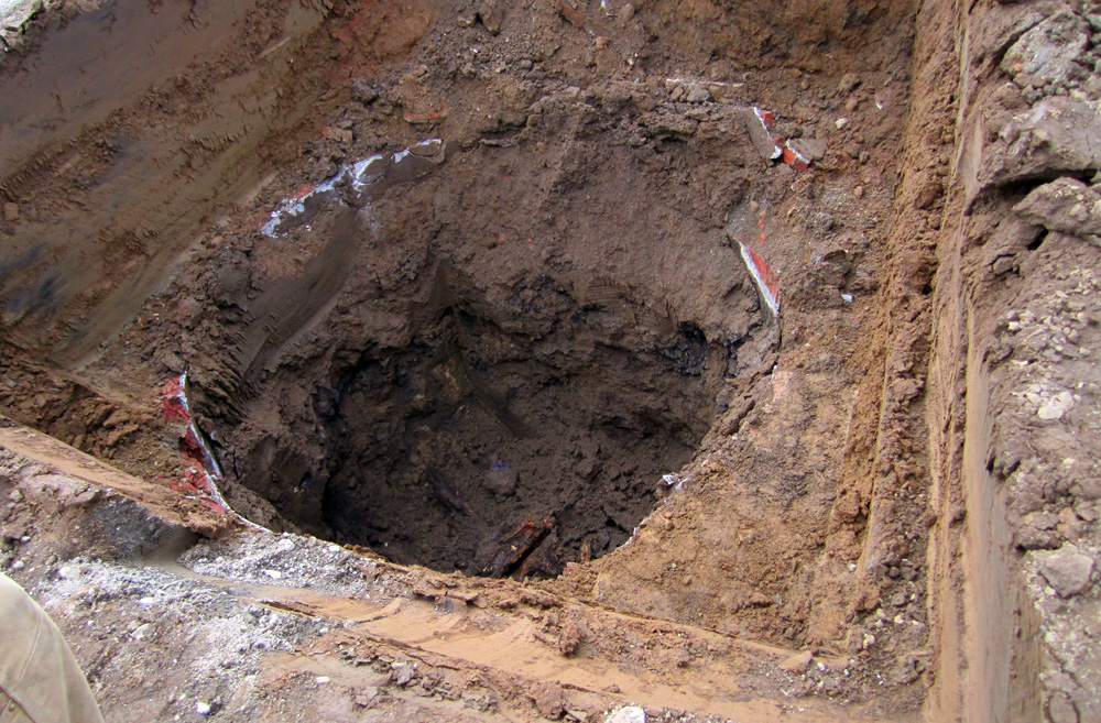 Crew found a soft spot in the ground while excavating for a temporary access road.