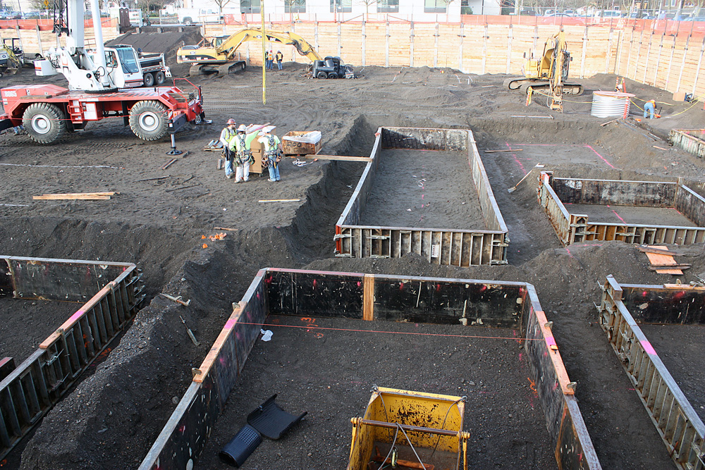 Hoffman crew go underground to construct the 210-stall garage at Cascade Campus. Photo taken by James Hill, February 2013