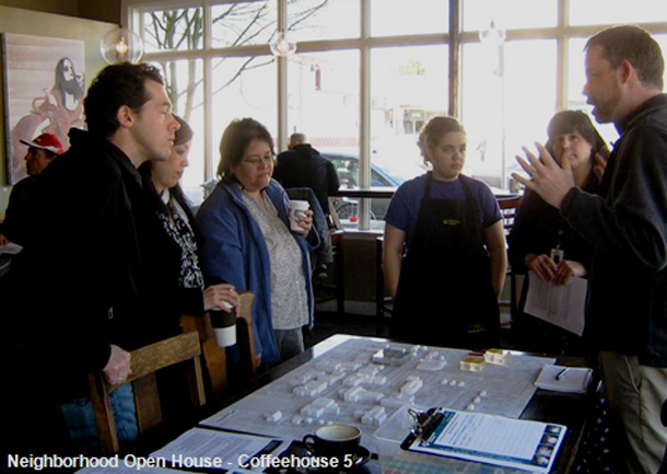 Campus and neighborhood stakeholders provide input during PCC Open House at Coffeehouse 5, April 19, 2011.