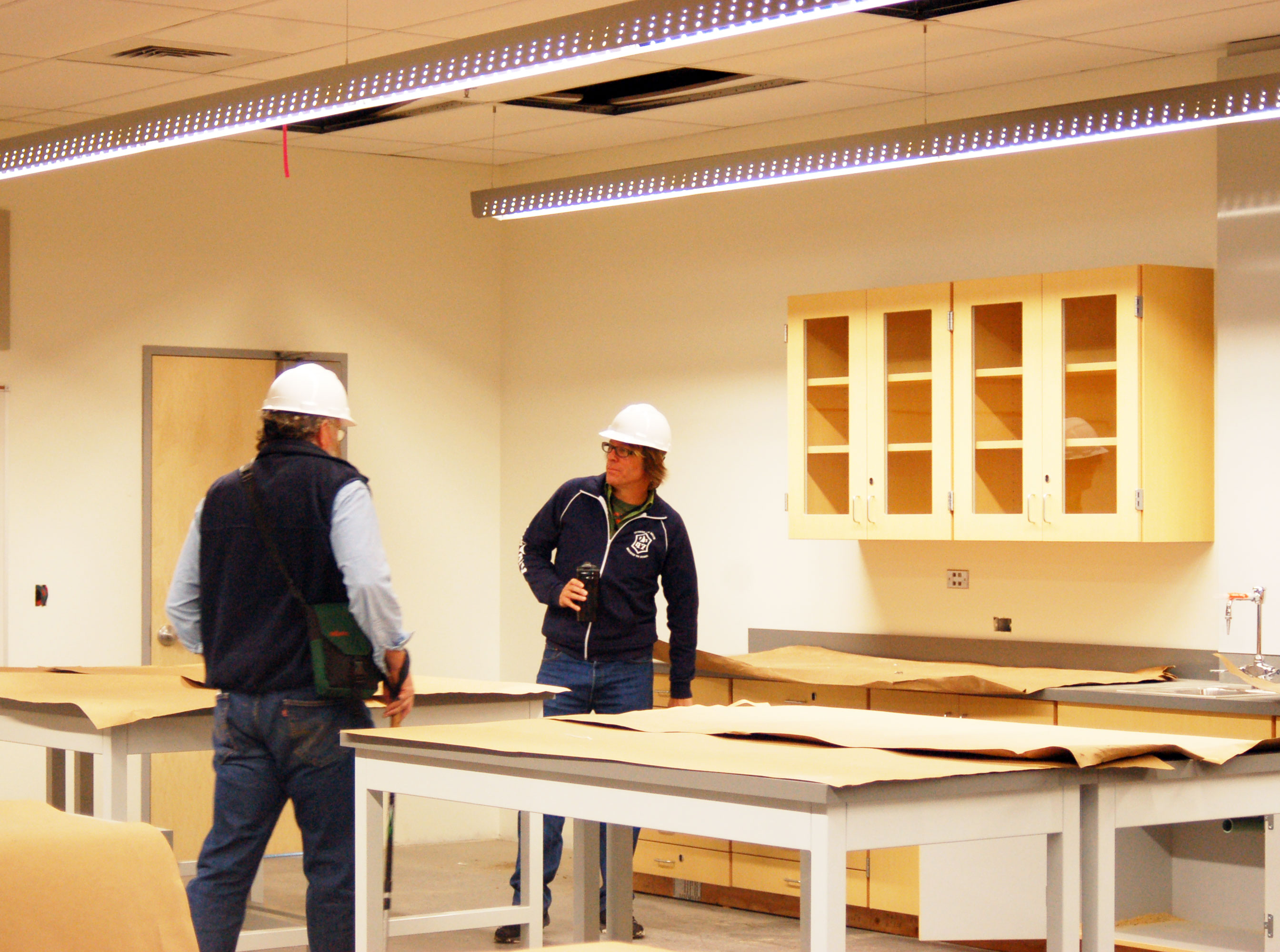 Instructors Eriks Puris and Frank Granshaw take a turn around the General Sciences/Geography classroom on the third floor.