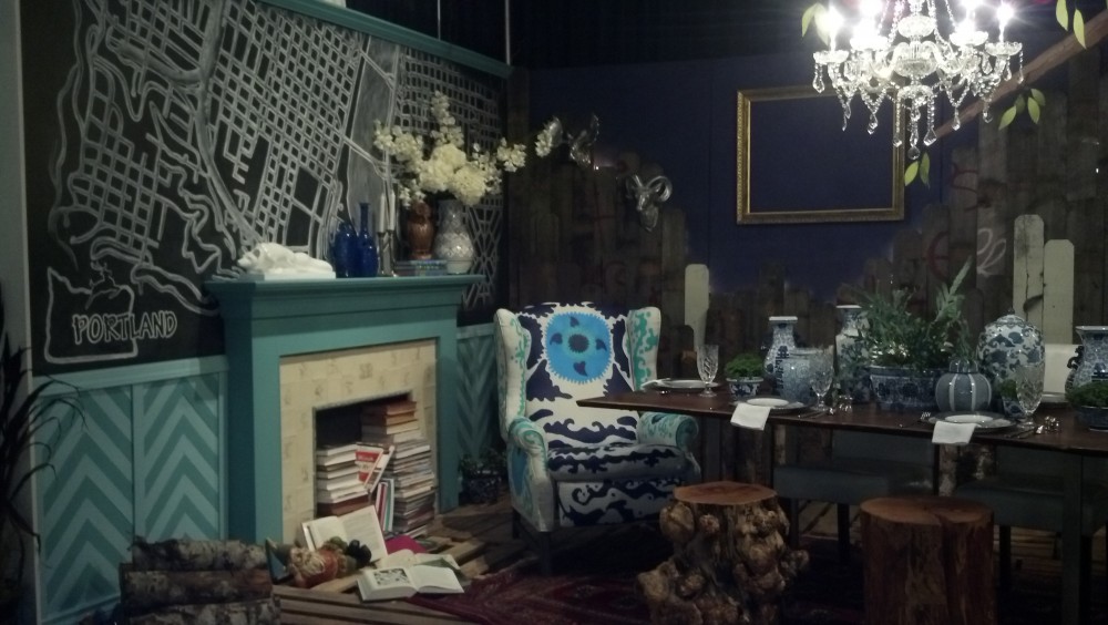 Space designed by PCC’s “Upcycle” team on display at the Portland Home and Garden Show this fall. It features a hand painted map of Downtown Portland.