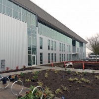 The public entrance to the new Student Commons is on SE 82nd Avenue, between the new campus bookstore and commercial storefront space on the first floor.