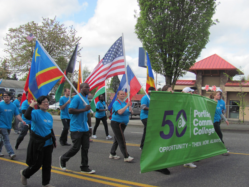 More than 50 PCC students, faculty and staff marched in the parade, showing their support for the local businesses and neighborhoods. Photo by Olman Sandoval.