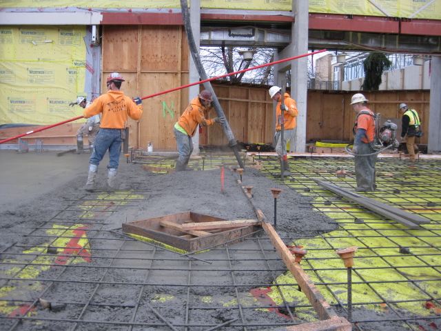More than 300 cubic yards of concrete is spread out over pad.