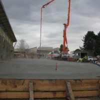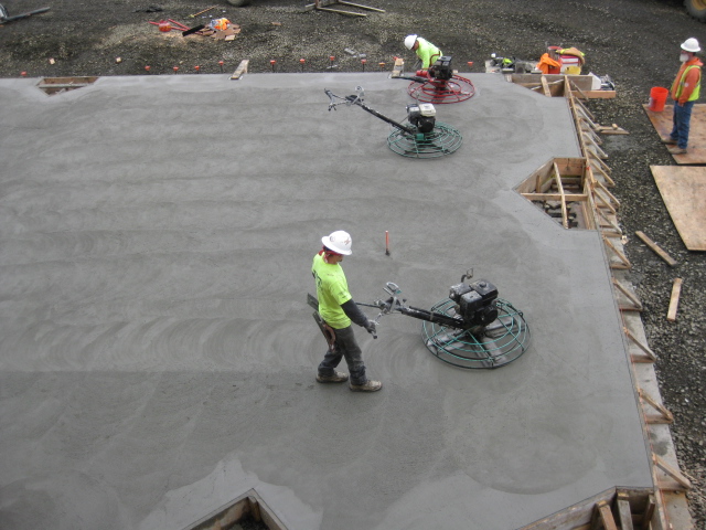 Twenty-four hours later the pour was nearly complete with crews buffing the concrete to give it a polished look.