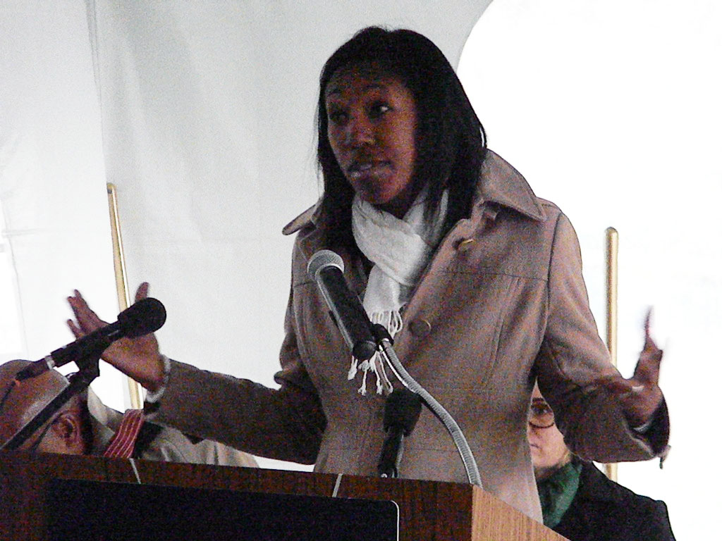 PCC Board member Kali Thorne Ladd addresses the audience.