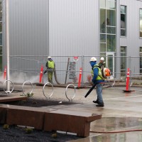 Blowing-bark-and-new-benches-in-the-campus-quad