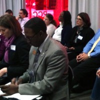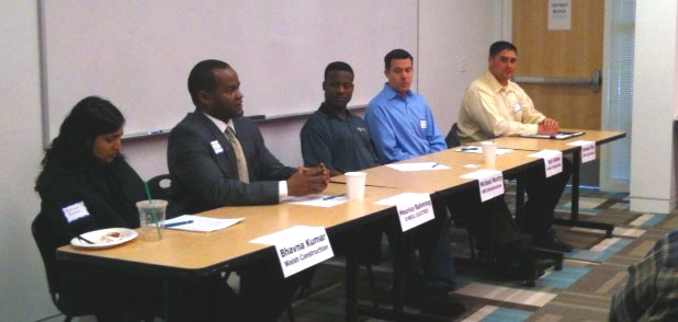One of two panels included representatives from firms leading joint ventures for campus improvements at PCC sites: (left to right) Bhavna Kumar and Maurice Rahming, O'Neill/Walsh Community Builders; Michael Martin, NW Instrastructure; Rob Fallow, Fortis Construction; and Brandon Flint, Inline Construction.