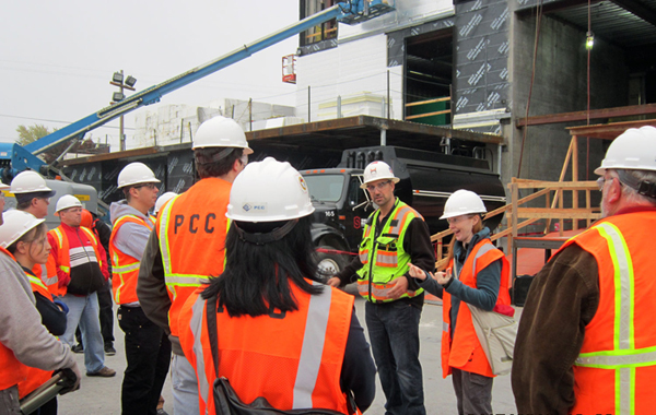 Jacob McKay, Site Superintendent with Hoffman Construction gives the group a general outline of the site.