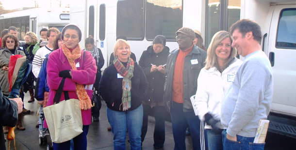 Waiting to board bus to tour the Cascade Campus Impact Mitigation Plan area