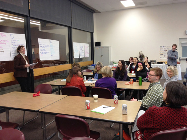 Nancy Merryman from Merryman Barnes Architects – a consultant to the PCC bond team Architects – helps guide the Child Development Center discussion at Sylvania Campus on December 15, 2011