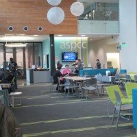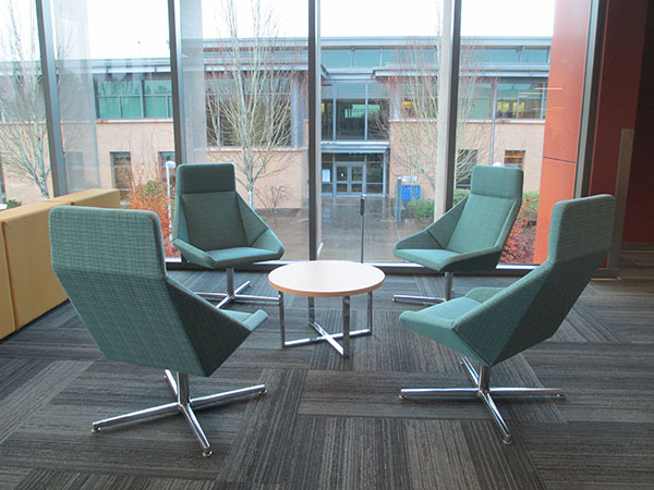 The lounge area on B5's second floor provides flexible space for socializing, relaxing or studying.