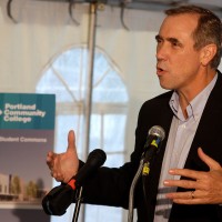 U.S. Senator-Jeff Merkley addresses the large event crowd