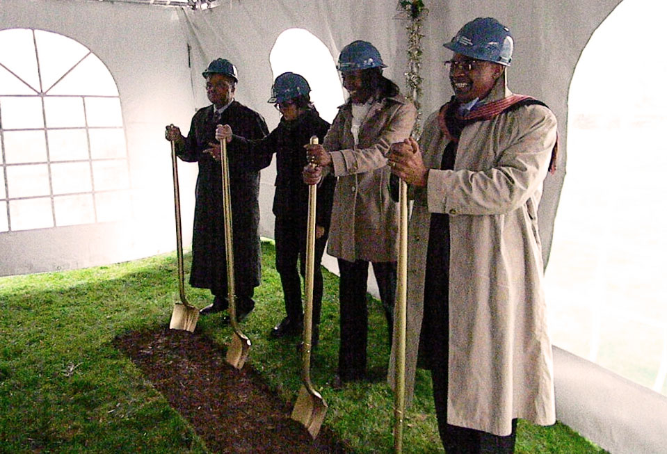 From left to right, Dr. Gatewood, Esther Forbyn, Kali Thorne Ladd and Dr. Pulliams take part in the groundbreaking ceremony.