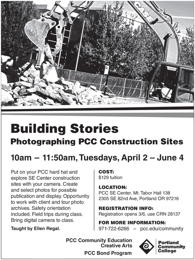 This media file is attached to: Building Stories: Photographing PCC Construction Class – Flyer