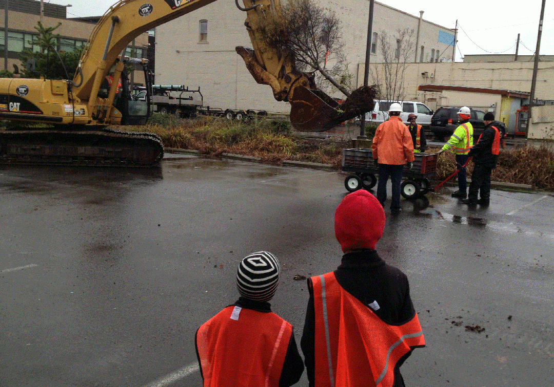 Hoffman Construction had their track hoe ready to help dig out larger trees at the event.