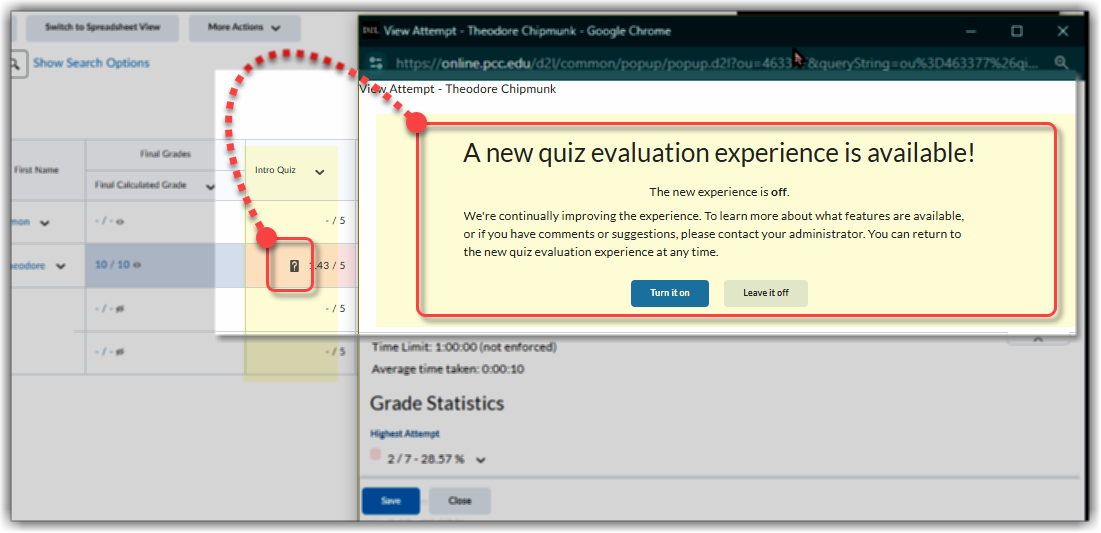 Before the experience rolls out to everyone, instructors can opt-in to the new quiz evaluation experience now!