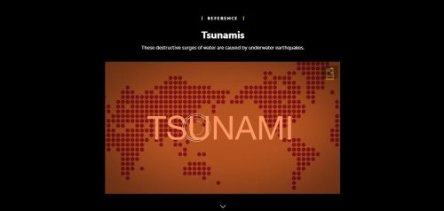 A tsunami is a series of large, vertical waves caused by a massive disturbance to ocean water. Tsunamis are caused by volcanic eruptions, underwater earthquakes or landslides, and meteor impacts.