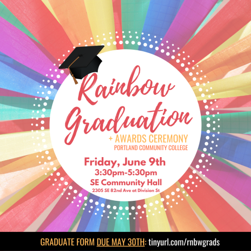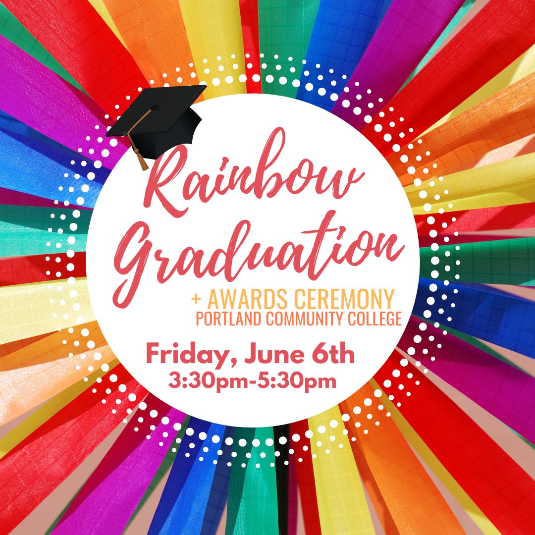 The Portland Community College Queer Resource Centers look forward to celebrating our ninth annual Rainbow Graduation + Awards Ceremony honoring LGBTQ+ graduating students and allies and celebrating the contributions of the queer and trans community at PCC in Spring 2025.
