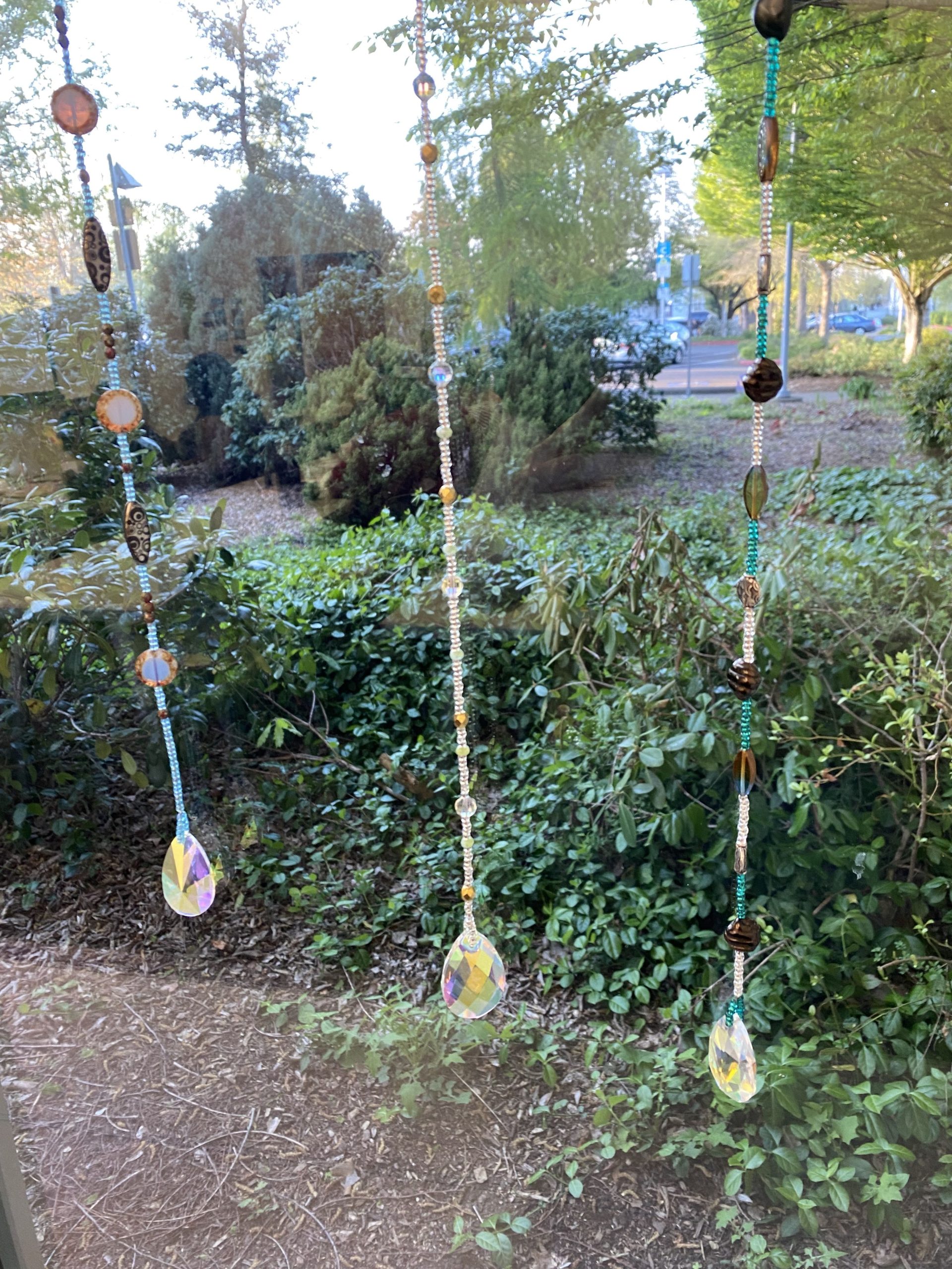 Beaded Window Hangings: create a roughly two foot-long window hanging and finish it with a crystal to catch the light.