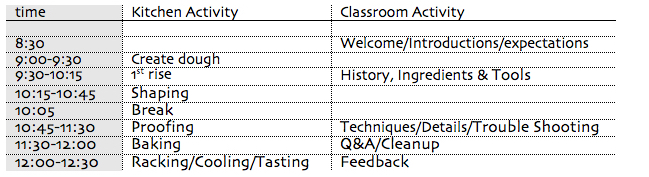 Here’s a Class outline: times are estimates…. the bread is in charge, not any of us.