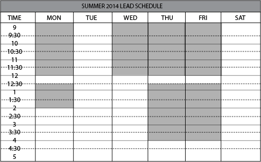 The summer is here and the garden is going off! Check the schedule below to see when you can come out and work with our fabulous garden family. The shaded areas reflect times when a garden lead will be there to supervise you. Remember to wear closed-toed shoes and bring your water bottle!