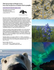 Wisdom of the Elders will be screening their film on climate issues from the perspectives of Alaskan Natives and afterwards will host a discussion around indigenous practices and the impacts experienced from mounting environmental and climate issues.