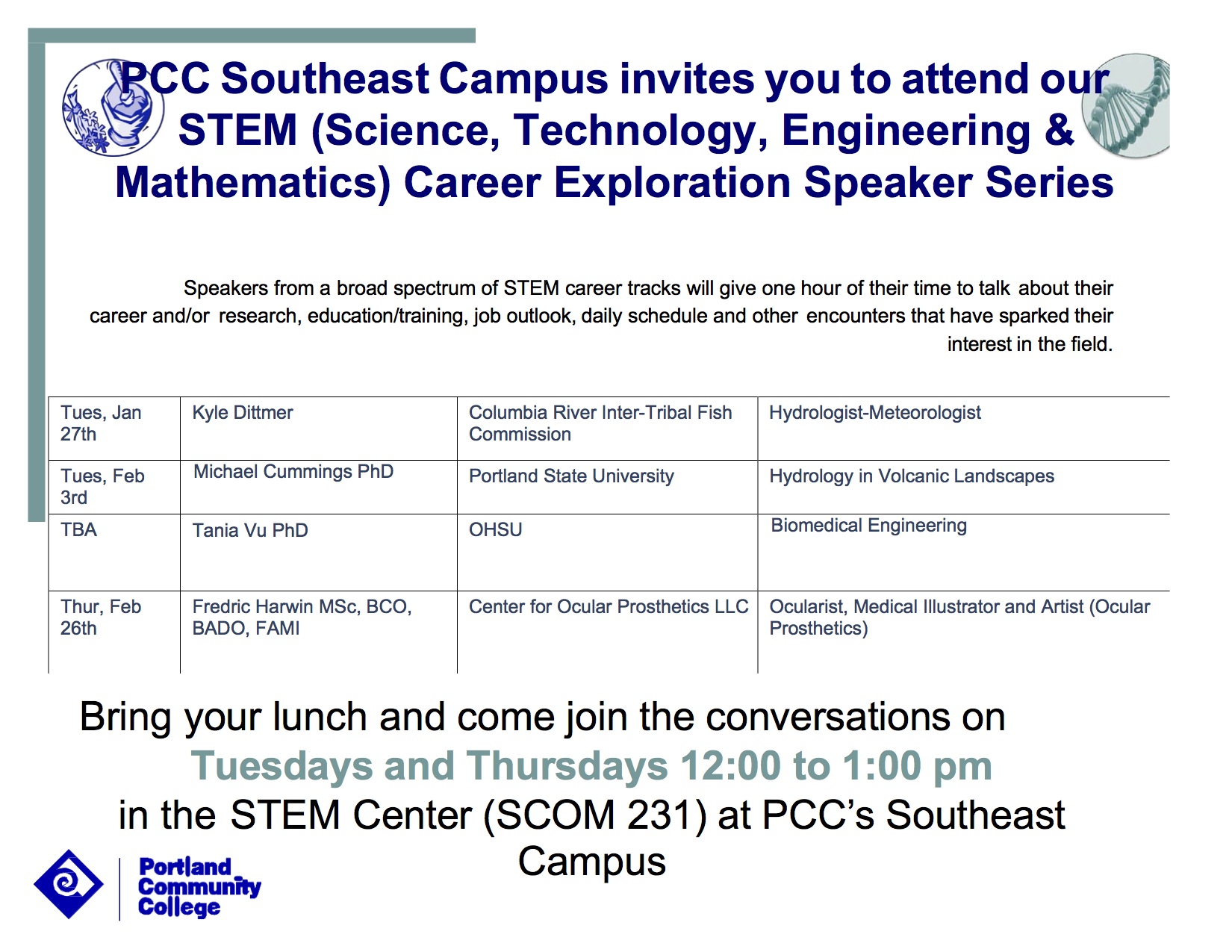 PCC Southeast Campus invites you to attend our STEM (Science, Technology, Engineering & Mathematics) Career Exploration Speaker Series