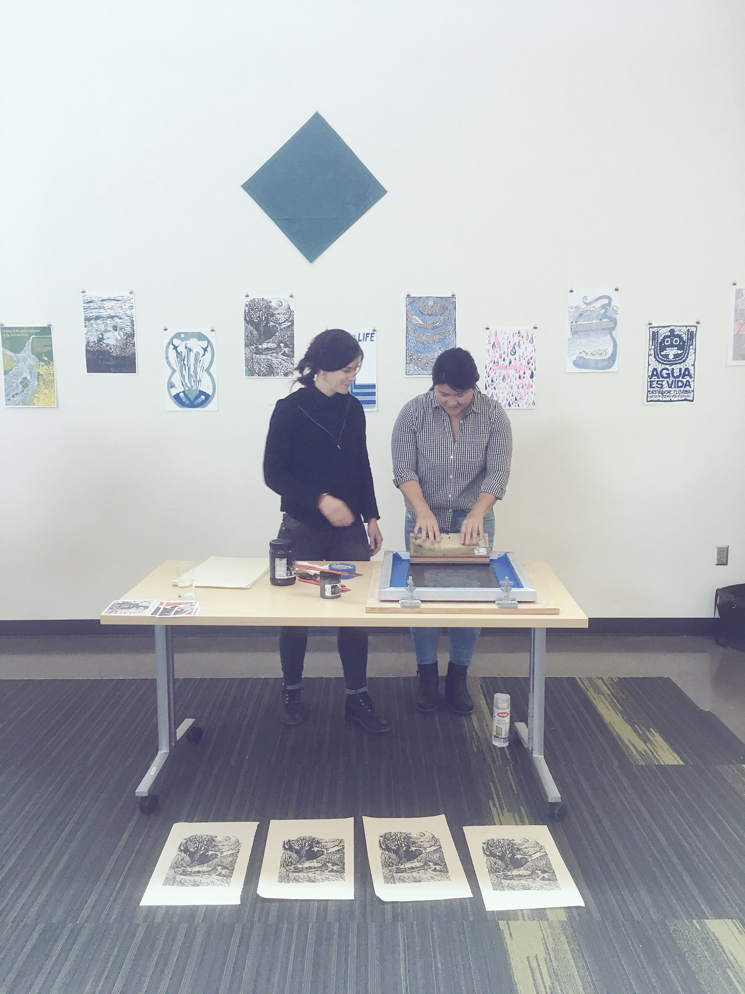 Thea Gahr from Justseeds Artist Cooperative at Cascade Campus teaching screen printing and art as activism