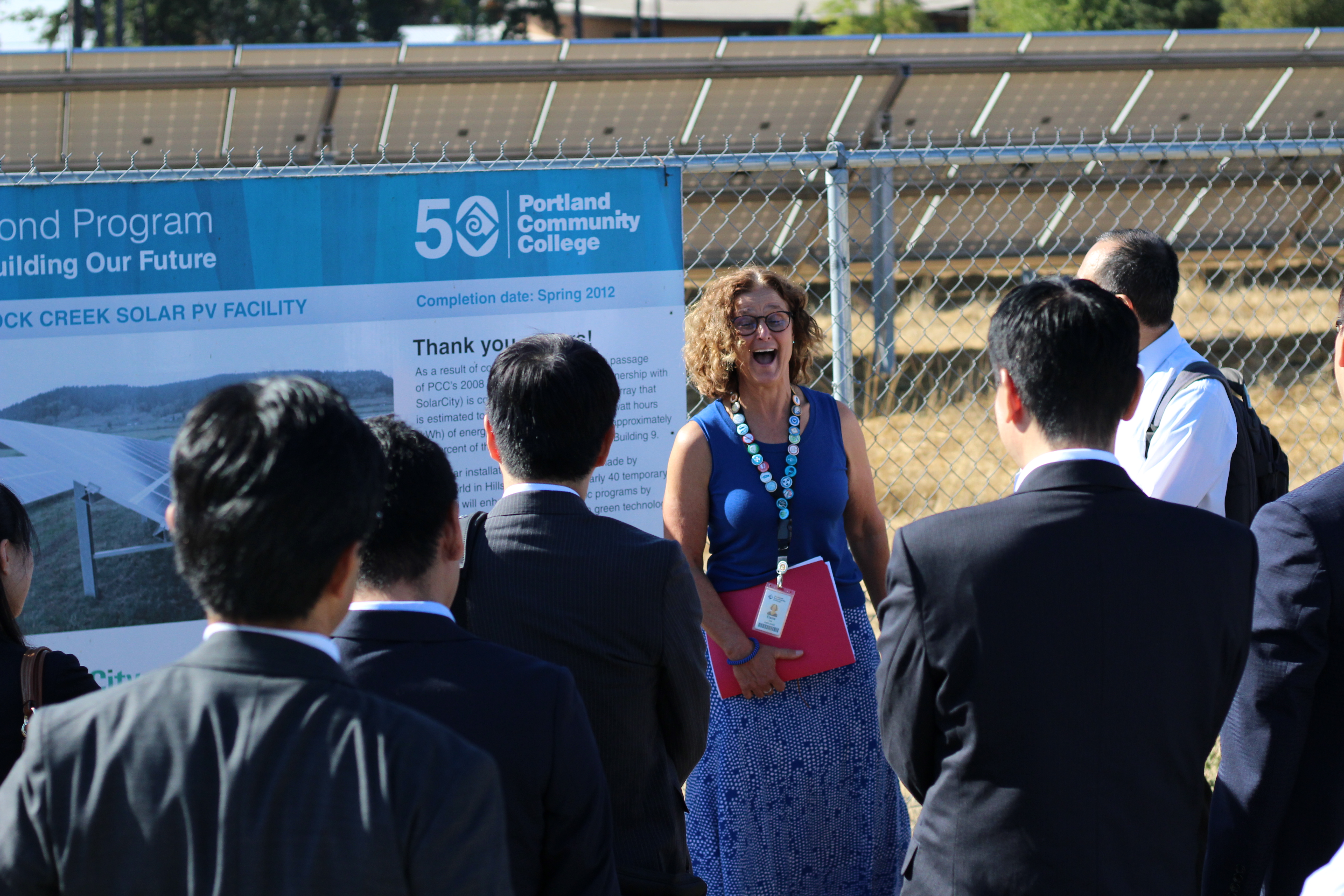 Japanese Energy Leaders on a tour of the solar array at PCC Rock Creek