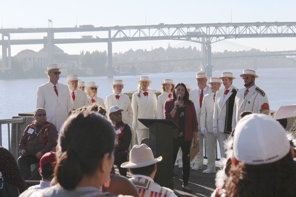 Thank you for tuning in, folks. I am pleased to report that on the morning of Friday, September 28th, on what was a rather warm early autumn day, with clear blue skies and the moon still showing in the sky off to the west, a very special occasion took place between The City of Portland as a governmental agency and many regional tribes from this area near the confluence of the Columbia and Willamette Rivers. I had the honor of speaking with Renea Perry after the ceremony, about PCC and also about its relation and connection to the events that took place on this day.