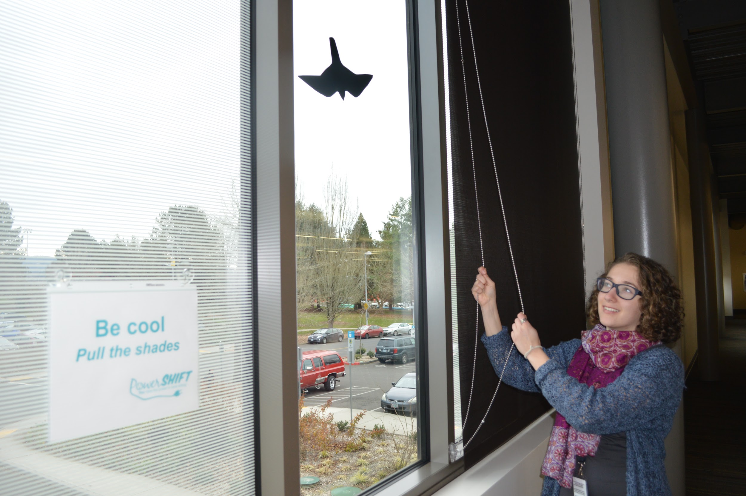 Anna Brown, Strategic Energy Management Associate, reminds employees to pull the shades for passive heating and cooling to regulate temperatures.