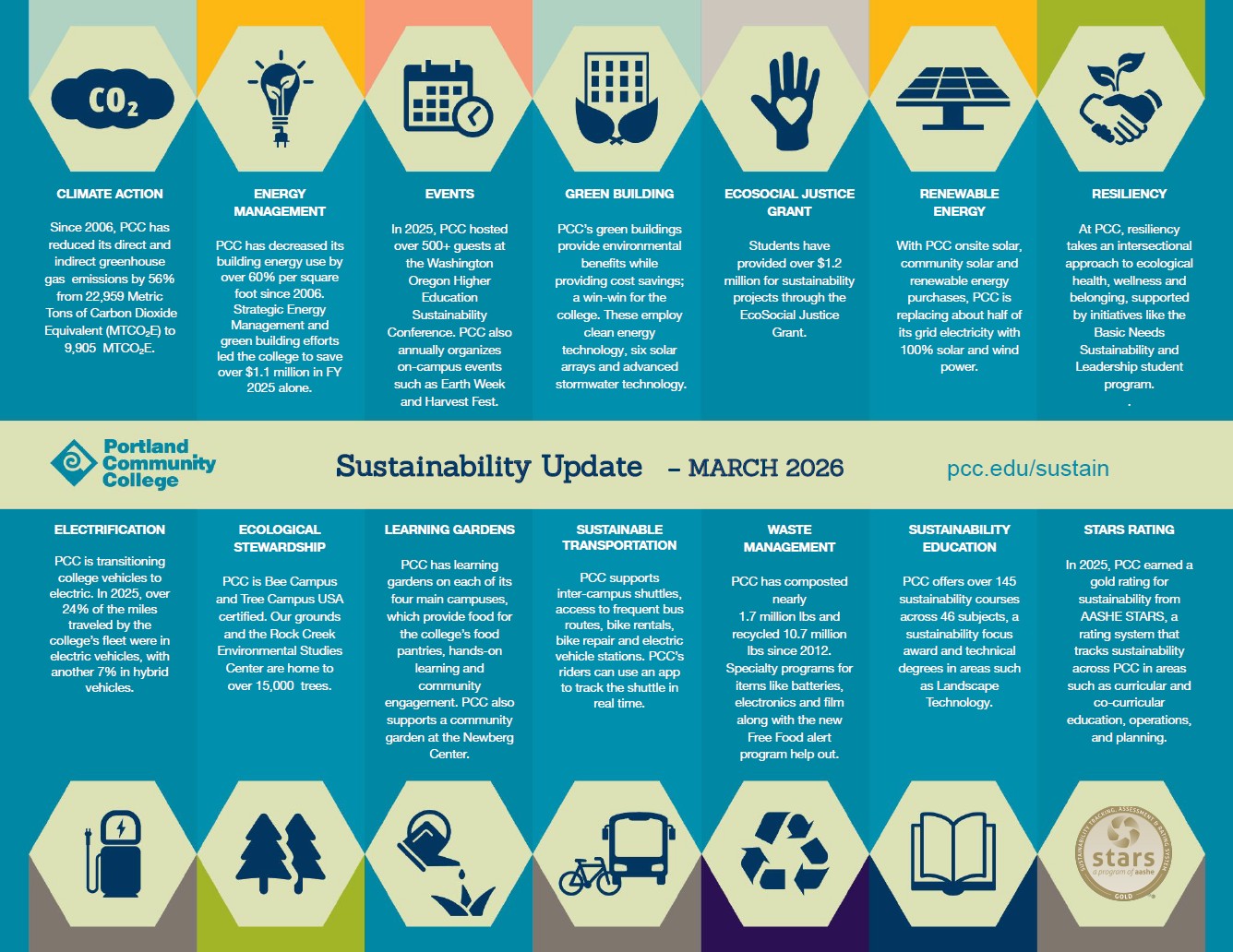 Board Policy BP-3551 states that: “Portland Community College is committed to becoming a leader in academic programs and operational practices that model the sustainable use of resources, so that the needs of current generations are met without impairing the ability of future generations to meet their own needs.”