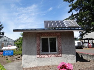 Two systems of photovoltaic panels were added to the Straw Bale House for automated data collection of wall moisture readings and lighting.