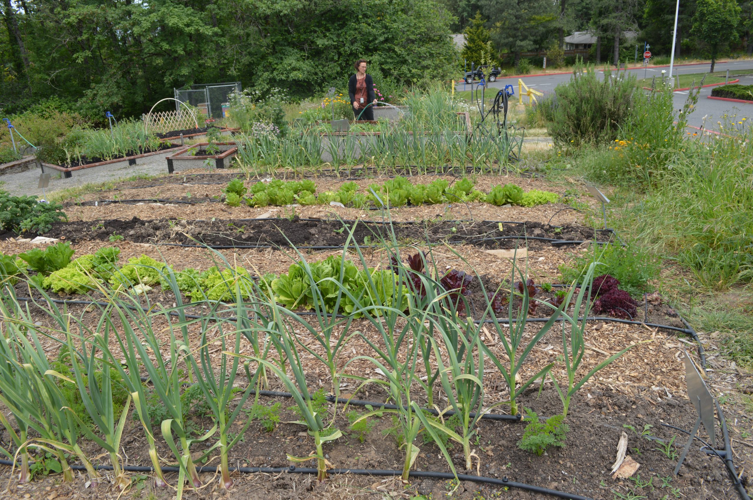 Sustainability staff watering at the Sylvania Campus Learning Garden, location of the Sustainability Focus Awards