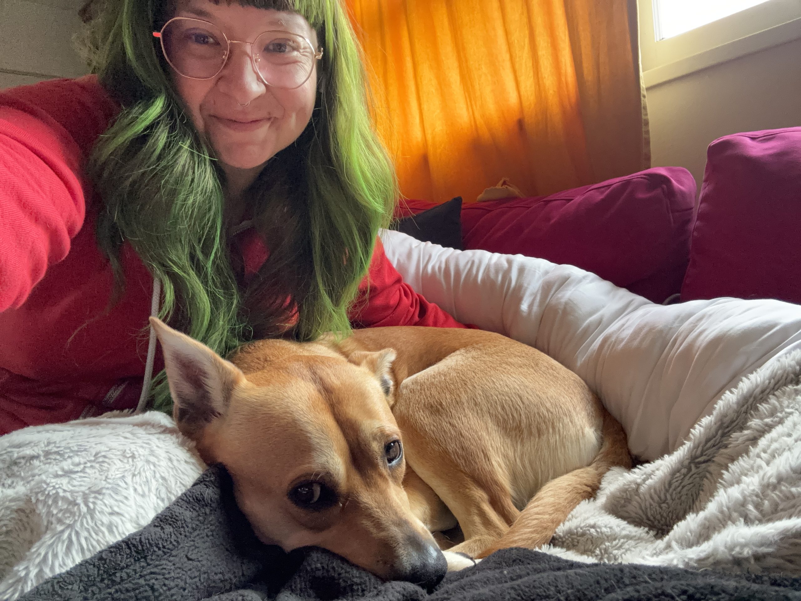 When I’m not working, I like to: binge watch Netflix or Hulu, take my puppy, Sugar, to the dog park, cuddle with Sugar or Penelope (my elderly and toothless cat), cuddle other people’s animals, go to Estate Sales, garden or do some home renovation project.